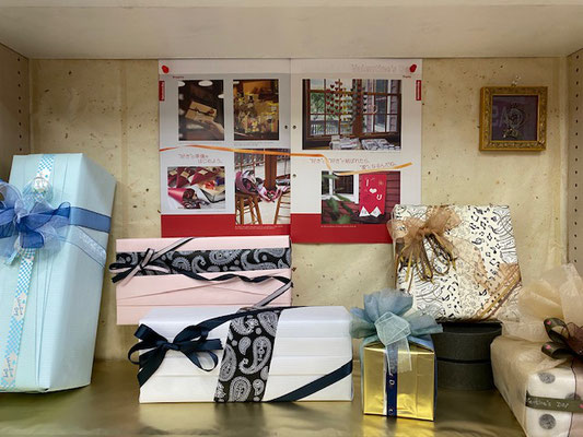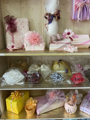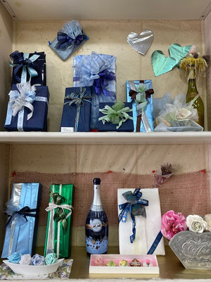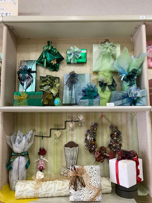 店内ディスプレイも、プレゼントを差し上げる方に感謝の気持ちを伝えるラッピングを、個性的に華やかに彩ります。